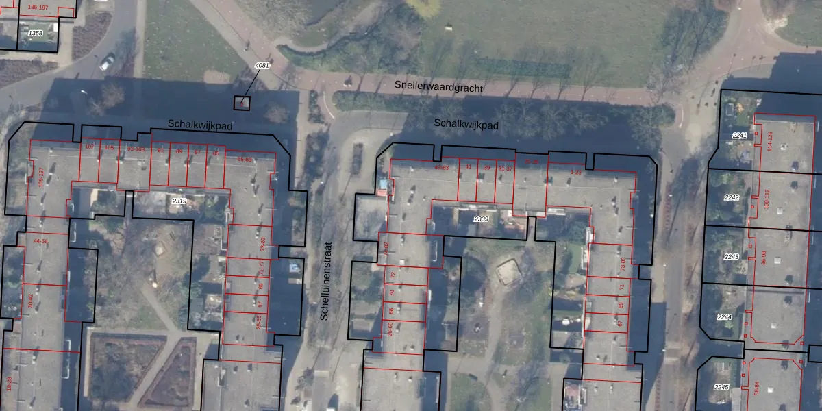 Het perceel waarop Schalkwijkpad 55 staat heeft een oppervlakte van 4984 m². Dit is een zeer groot perceel. De perceeloppervlakte wordt geregistreerd door het Kadaster. Gedetailleerde informatie over de maten van dit perceel kunt u vinden in het rapport Kadastrale kaart met maatvoering van Schalkwijkpad 55.