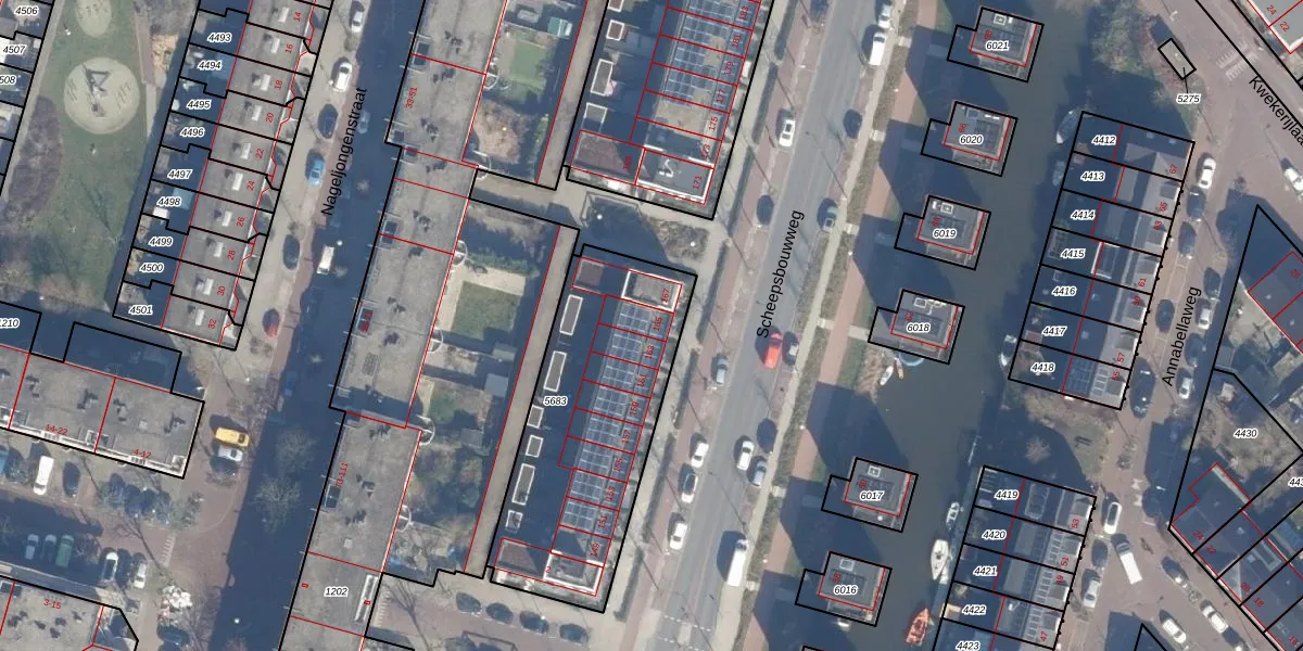 Scheepsbouwweg 165 is gelegen op kadastraal perceel ASD28AH5683. Deze kadastrale aanduiding is uniek en wordt gebruikt door het Kadaster om eigendomsrechten en andere zakelijke rechten vast te leggen. Het perceel maakt onderdeel uit van de kadastrale gemeente Amsterdam.