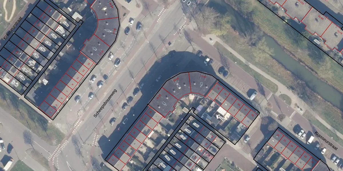 Het perceel waarop Scheepsbouwweg 30 staat heeft een oppervlakte van 2329 m². Dit is een zeer groot perceel. De perceeloppervlakte wordt geregistreerd door het Kadaster. Gedetailleerde informatie over de maten van dit perceel kunt u vinden in het rapport Kadastrale kaart met maatvoering van Scheepsbouwweg 30.