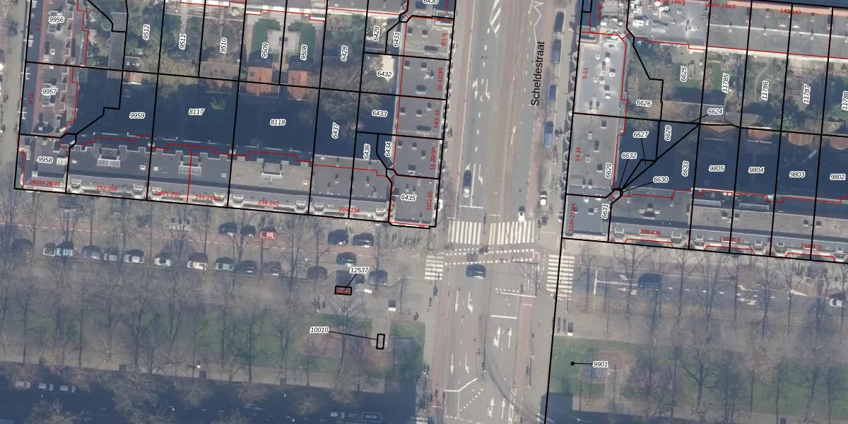Scheldestraat 26 is gelegen op kadastraal perceel ASD18V6435. Deze kadastrale aanduiding is uniek en wordt gebruikt door het Kadaster om eigendomsrechten en andere zakelijke rechten vast te leggen. Het perceel maakt onderdeel uit van de kadastrale gemeente Amsterdam.