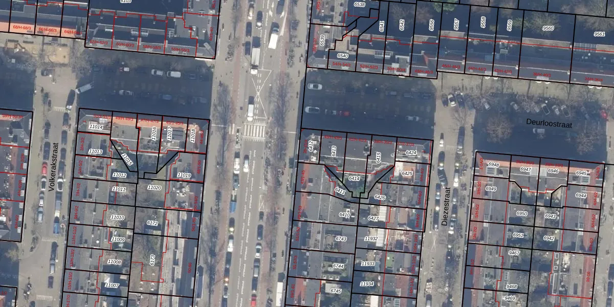 Het adres is gelegen op perceel 6412 in de sectie V en de kadastrale gemeente Amsterdam. De kadastrale aanduiding is aldus ASD18-V-6412. Het perceel is kleiner dan gemiddeld in Amsterdam. Het perceel is 76 m² groot, terwijl het gemiddelde ligt op 559,23 m². Het grootste perceel in de kadastrale gemeente is 12,5 ha. Het kleinste perceel heeft een oppervlakte van 0 m². Op het perceel liggen in totaal 5 adressen. In de Basisregistratie Kadaster (BRK) werden de grenzen van het perceel geregistreerd op 08-11-2006.