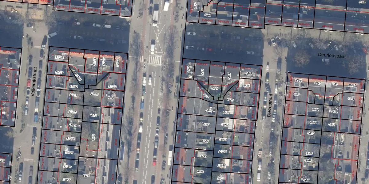 Het adres is gelegen op perceel 6411 in de sectie V en de kadastrale gemeente Amsterdam. De kadastrale aanduiding is aldus ASD18-V-6411. Het perceel is kleiner dan gemiddeld in Amsterdam. Het perceel is 143 m² groot, terwijl het gemiddelde ligt op 559,23 m². Het grootste perceel in de kadastrale gemeente is 12,5 ha. Het kleinste perceel heeft een oppervlakte van 0 m². Er zijn 4 adressen aanwezig op het perceel. De huidige grenzen van het perceel zijn digitaal in de Basisregistratie Kadaster (BRK) geregistreerd op 08-11-2006.