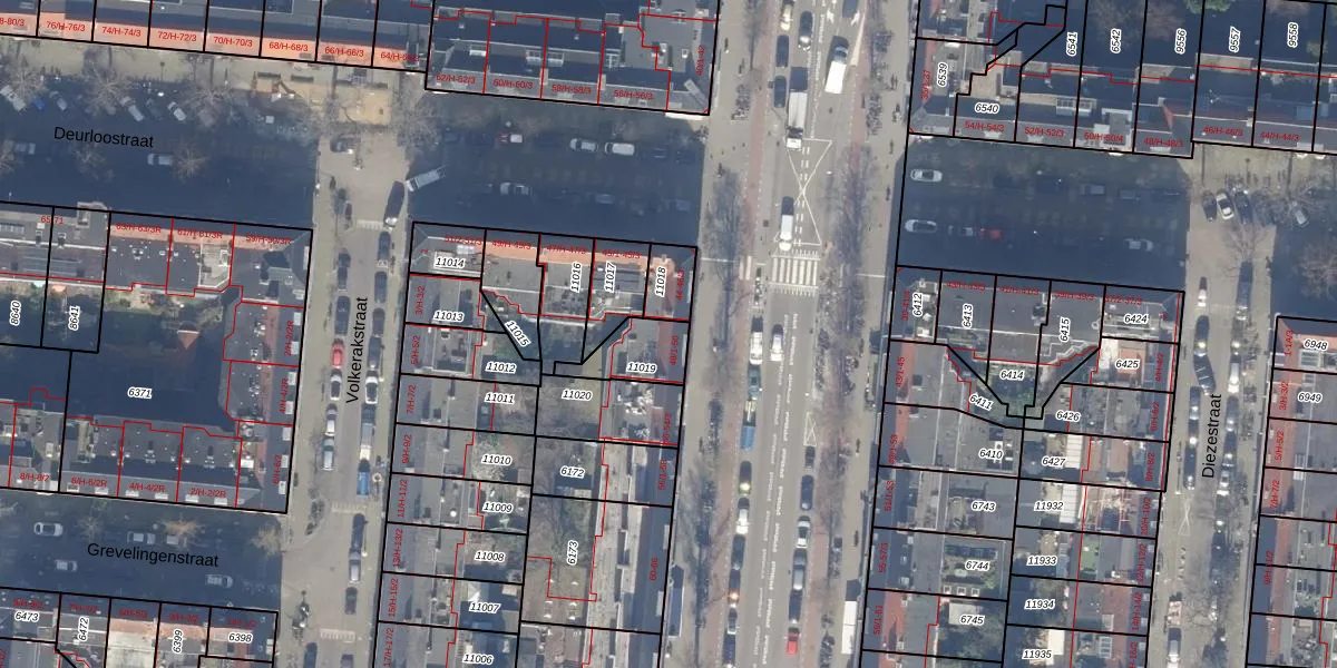 Het adres is gelegen op perceel 11019 in de sectie V en de kadastrale gemeente Amsterdam. De kadastrale aanduiding is aldus ASD18-V-11019. Het perceel is kleiner dan gemiddeld in Amsterdam. Het perceel is 131 m² groot, terwijl het gemiddelde ligt op 559,23 m². Het grootste perceel in de kadastrale gemeente is 12,5 ha. Het kleinste perceel heeft een oppervlakte van 0 m². Er zijn 4 adressen aanwezig op het perceel. De huidige grenzen van het perceel zijn digitaal in de Basisregistratie Kadaster (BRK) geregistreerd op 14-12-2006.