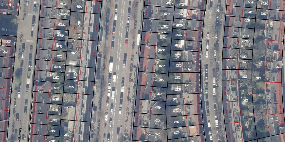 Het adres is gelegen op perceel 6747 in de sectie V en de kadastrale gemeente Amsterdam. De kadastrale aanduiding is aldus ASD18-V-6747. Het perceel is kleiner dan gemiddeld in Amsterdam. Het perceel is 201 m² groot, terwijl het gemiddelde ligt op 559,23 m². Het grootste perceel in de kadastrale gemeente is 12,5 ha. Het kleinste perceel heeft een oppervlakte van 0 m². Op het perceel zijn 4 adressen aanwezig. De huidige grenzen van het perceel zijn digitaal in de Basisregistratie Kadaster (BRK) geregistreerd op 08-11-2006.
