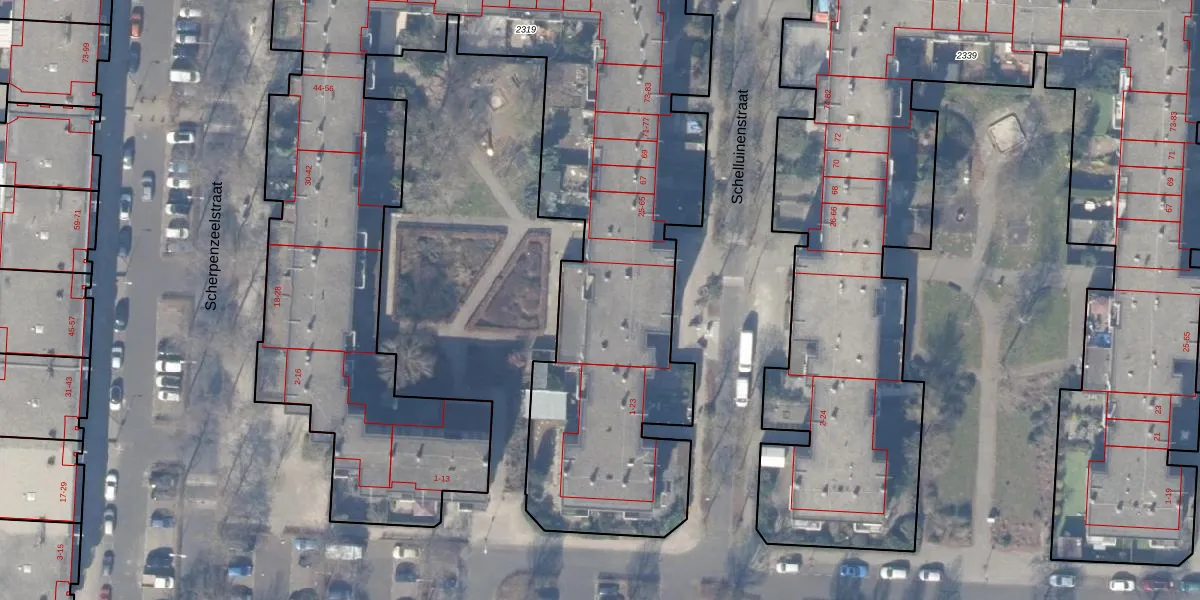 Schelluinenstraat 43 is gelegen op kadastraal perceel WPK02L2319. Deze kadastrale aanduiding is uniek en wordt gebruikt door het Kadaster om eigendomsrechten en andere zakelijke rechten vast te leggen. Het perceel maakt onderdeel uit van de kadastrale gemeente Weesperkarspel.