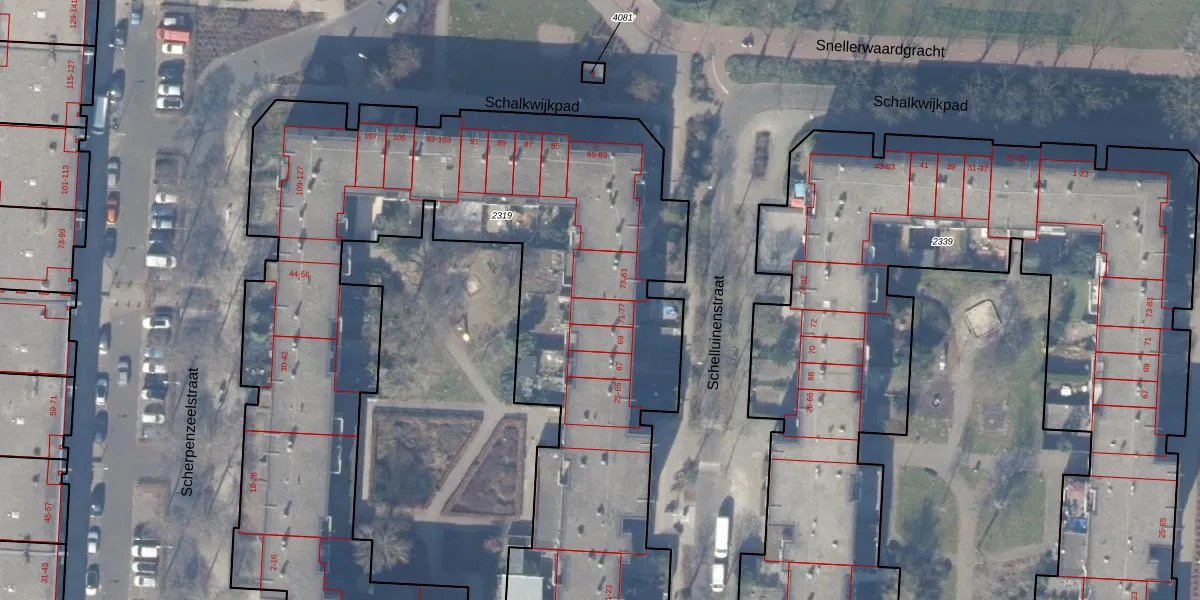 Het perceel waarop Schelluinenstraat 77 staat heeft een oppervlakte van 5037 m². Dit is een zeer groot perceel. De perceeloppervlakte wordt geregistreerd door het Kadaster. Gedetailleerde informatie over de maten van dit perceel kunt u vinden in het rapport Kadastrale kaart met maatvoering van Schelluinenstraat 77.