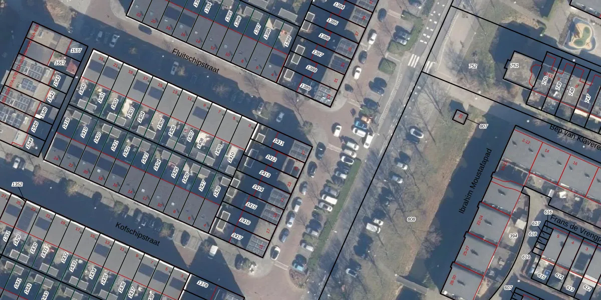 Gebruik de zoekbalk of klik op een perceel voor informatie over de adressen binnen dit perceel.