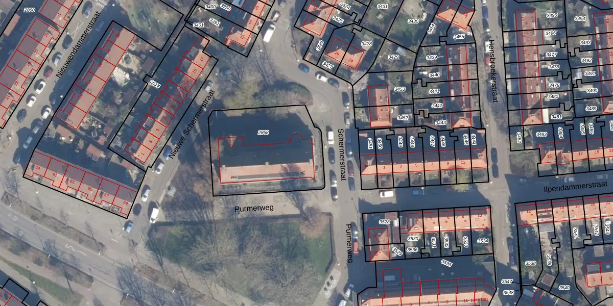 Het perceel waarop Schermerstraat 3 staat heeft een oppervlakte van 995 m². Dit is een groot perceel. De perceeloppervlakte wordt geregistreerd door het Kadaster. Gedetailleerde informatie over de maten van dit perceel kunt u vinden in het rapport Kadastrale kaart met maatvoering van Schermerstraat 3.