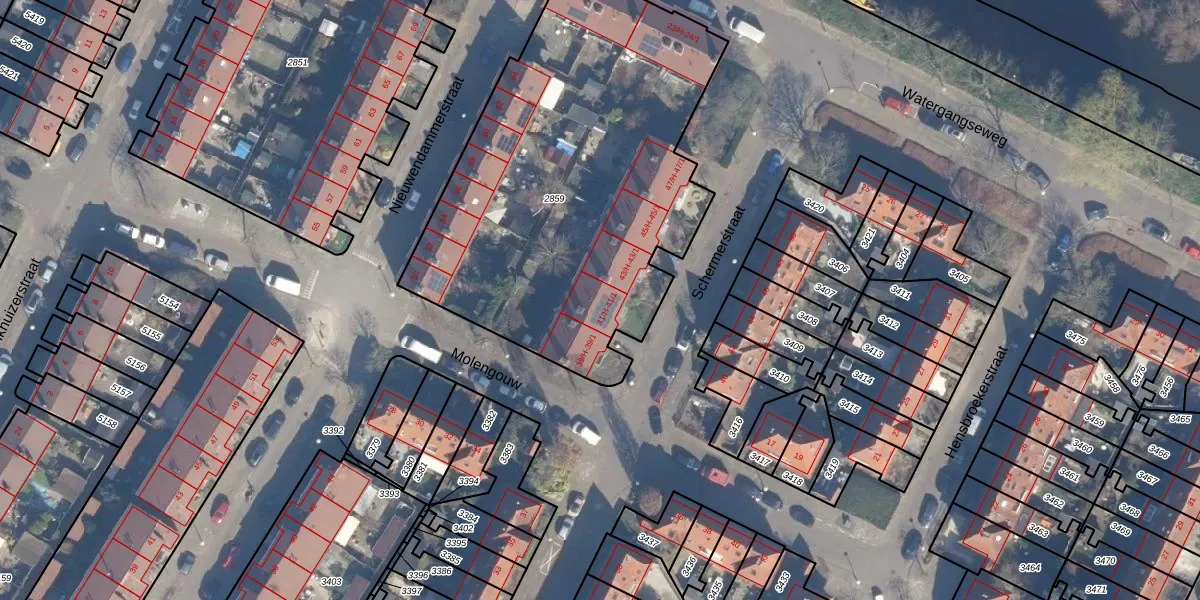 Het perceel waarop Schermerstraat 41-H staat heeft een oppervlakte van 2235 m². Dit is een zeer groot perceel. De perceeloppervlakte wordt geregistreerd door het Kadaster. Gedetailleerde informatie over de maten van dit perceel kunt u vinden in het rapport Kadastrale kaart met maatvoering van Schermerstraat 41-H.