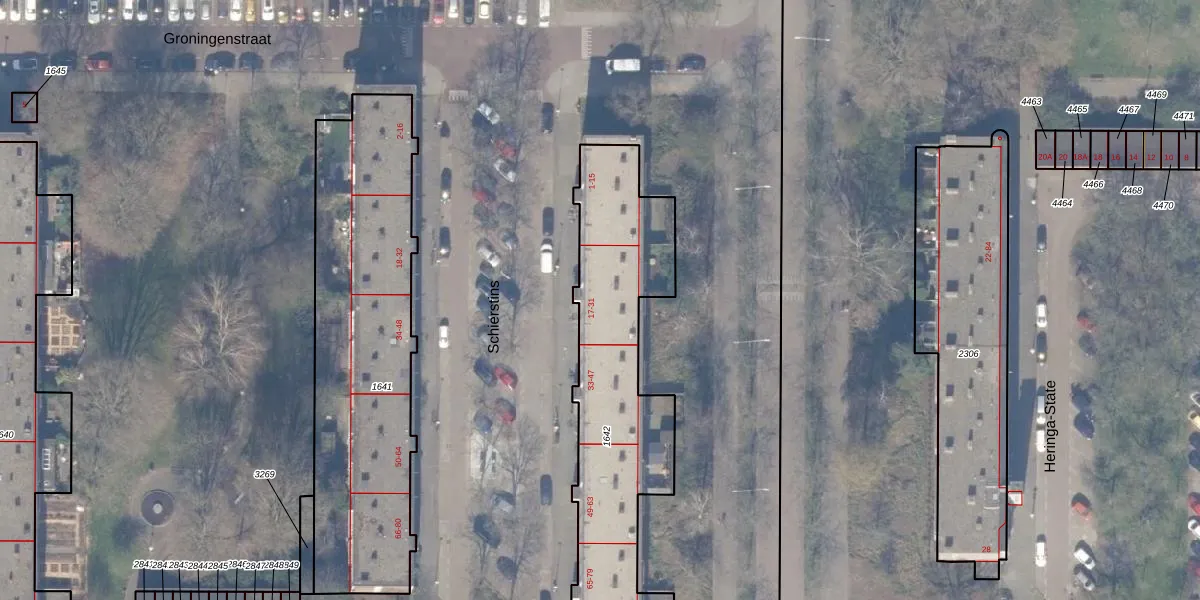 Het perceel waarop Schierstins 25 staat heeft een oppervlakte van 1312 m². Dit is een zeer groot perceel. De perceeloppervlakte wordt geregistreerd door het Kadaster. Gedetailleerde informatie over de maten van dit perceel kunt u vinden in het rapport Kadastrale kaart met maatvoering van Schierstins 25.