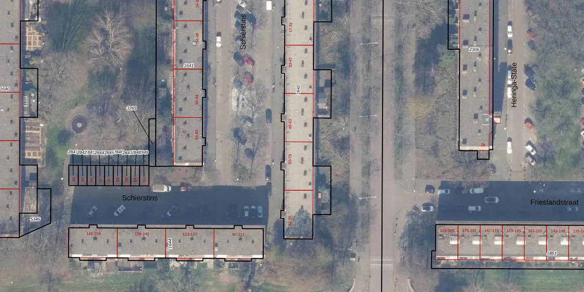 Het perceel waarop Schierstins 65 staat heeft een oppervlakte van 1312 m². Dit is een zeer groot perceel. De perceeloppervlakte wordt geregistreerd door het Kadaster. Gedetailleerde informatie over de maten van dit perceel kunt u vinden in het rapport Kadastrale kaart met maatvoering van Schierstins 65.