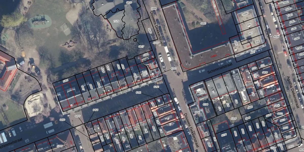Het perceel waarop Schimmelstraat 16-1 staat heeft een oppervlakte van 54 m². Dit is een klein perceel. De perceeloppervlakte wordt geregistreerd door het Kadaster. Gedetailleerde informatie over de maten van dit perceel kunt u vinden in het rapport Kadastrale kaart met maatvoering van Schimmelstraat 16-1.