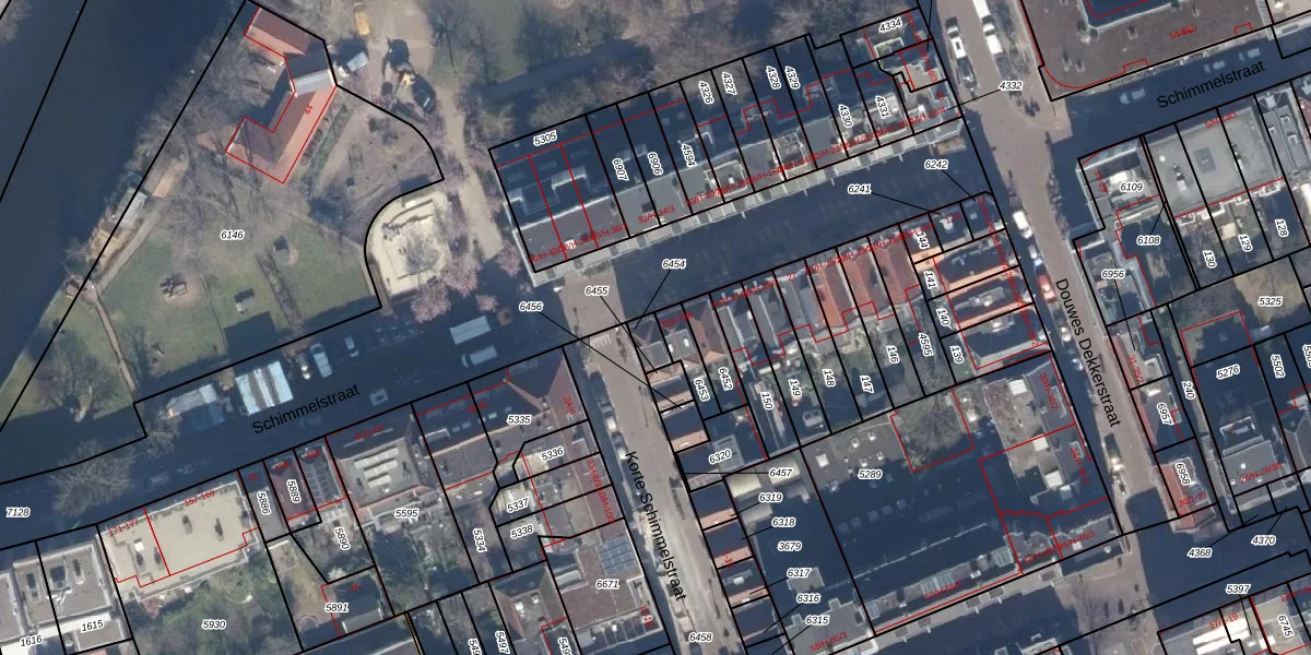 Schimmelstraat 33-B is gelegen op kadastraal perceel ASD16T6454. Deze kadastrale aanduiding is uniek en wordt gebruikt door het Kadaster om eigendomsrechten en andere zakelijke rechten vast te leggen. Het perceel maakt onderdeel uit van de kadastrale gemeente Amsterdam.