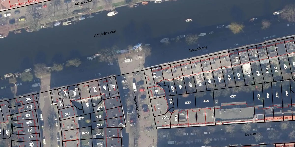 Het adres is gelegen op perceel 5267 in de sectie V en de kadastrale gemeente Amsterdam. De kadastrale aanduiding is aldus ASD18-V-5267. De gemiddelde perceelgrootte in Amsterdam is 559,23 m². Dit perceel is kleiner: de perceeloppervlakte bedraagt 170 m². Het kleinste perceel in de kadastrale gemeente is 0 m² groot. De grootste perceeloppervlakte is 12,5 ha. Op het perceel zijn 9 adressen aanwezig. In de Basisregistratie Kadaster (BRK) werden de grenzen van het perceel geregistreerd op 19-11-2019.