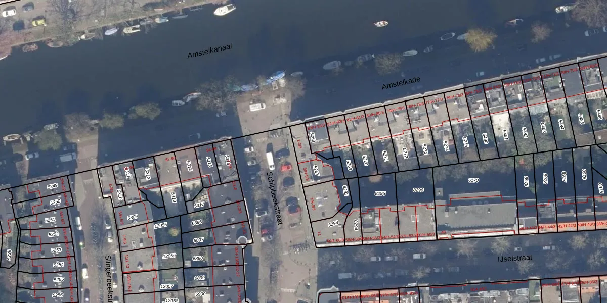 Het adres is gelegen op perceel 5267 in de sectie V en de kadastrale gemeente Amsterdam. De kadastrale aanduiding is aldus ASD18-V-5267. De gemiddelde perceelgrootte in Amsterdam is 559,23 m². Dit perceel is kleiner: de perceeloppervlakte bedraagt 170 m². Het kleinste perceel in de kadastrale gemeente is 0 m² groot. De grootste perceeloppervlakte is 12,5 ha. Op het perceel zijn 9 adressen aanwezig. In de Basisregistratie Kadaster (BRK) werden de grenzen van het perceel geregistreerd op 19-11-2019.