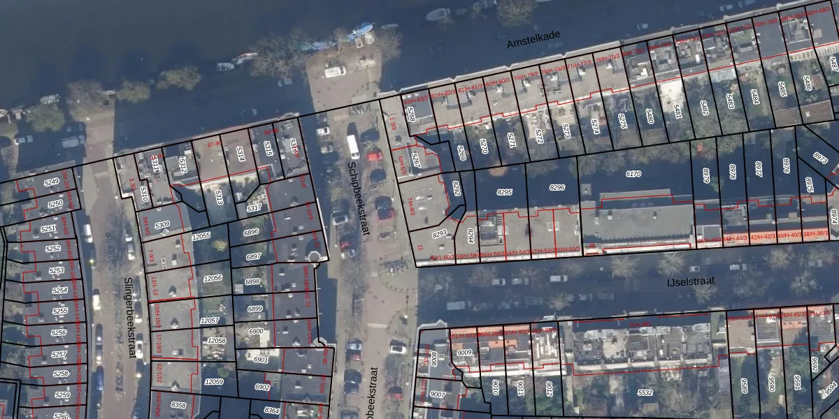Het perceel waarop het adres ligt is ASD18-V-8292. De afkorting 'ASD18' staat voor kadastrale gemeente Amsterdam. Het perceel is kleiner dan gemiddeld in Amsterdam. Het perceel is 162 m² groot, terwijl het gemiddelde ligt op 559,23 m². Het kleinste perceel in de kadastrale gemeente is 0 m² groot. De grootste perceeloppervlakte is 12,5 ha. Er zijn 7 adressen aanwezig op het perceel. De huidige grenzen van het perceel zijn digitaal in de Basisregistratie Kadaster (BRK) geregistreerd op 19-11-2019.
