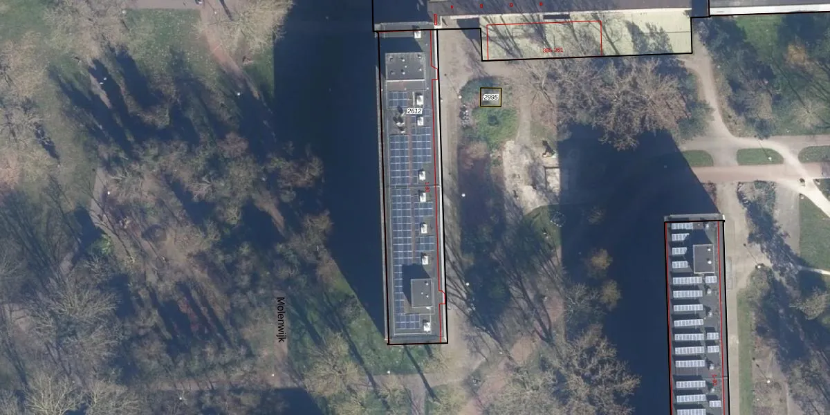 Het perceel waarop Schipmolen 46 staat heeft een oppervlakte van 1084 m². Dit is een zeer groot perceel. De perceeloppervlakte wordt geregistreerd door het Kadaster. Gedetailleerde informatie over de maten van dit perceel kunt u vinden in het rapport Kadastrale kaart met maatvoering van Schipmolen 46.
