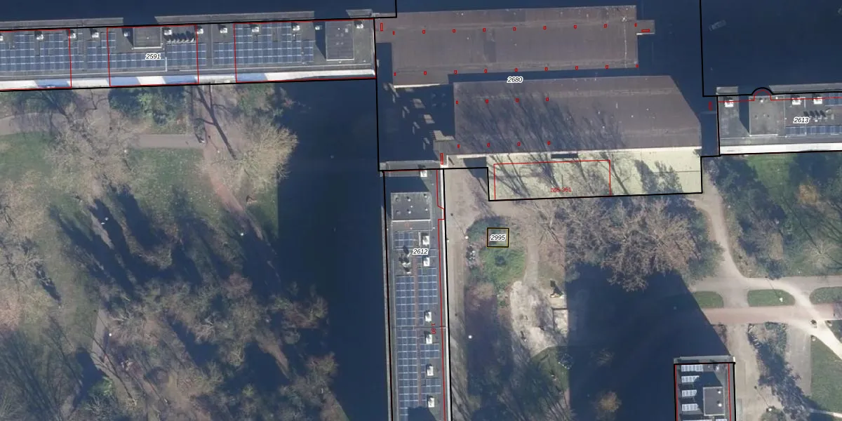 Het adres is gelegen op perceel 2612 in de sectie AO en de kadastrale gemeente Amsterdam. De kadastrale aanduiding is aldus ASD34-AO-2612. De gemiddelde perceelgrootte in Amsterdam is 1153,75 m². Dit perceel is kleiner: de perceeloppervlakte bedraagt 1084 m². Het kleinste perceel in de kadastrale gemeente is 0 m² groot. De grootste perceeloppervlakte is 25,8 ha. Op het perceel zijn 80 adressen aanwezig. De huidige grenzen van het perceel zijn digitaal in de Basisregistratie Kadaster (BRK) geregistreerd op 15-12-2010.