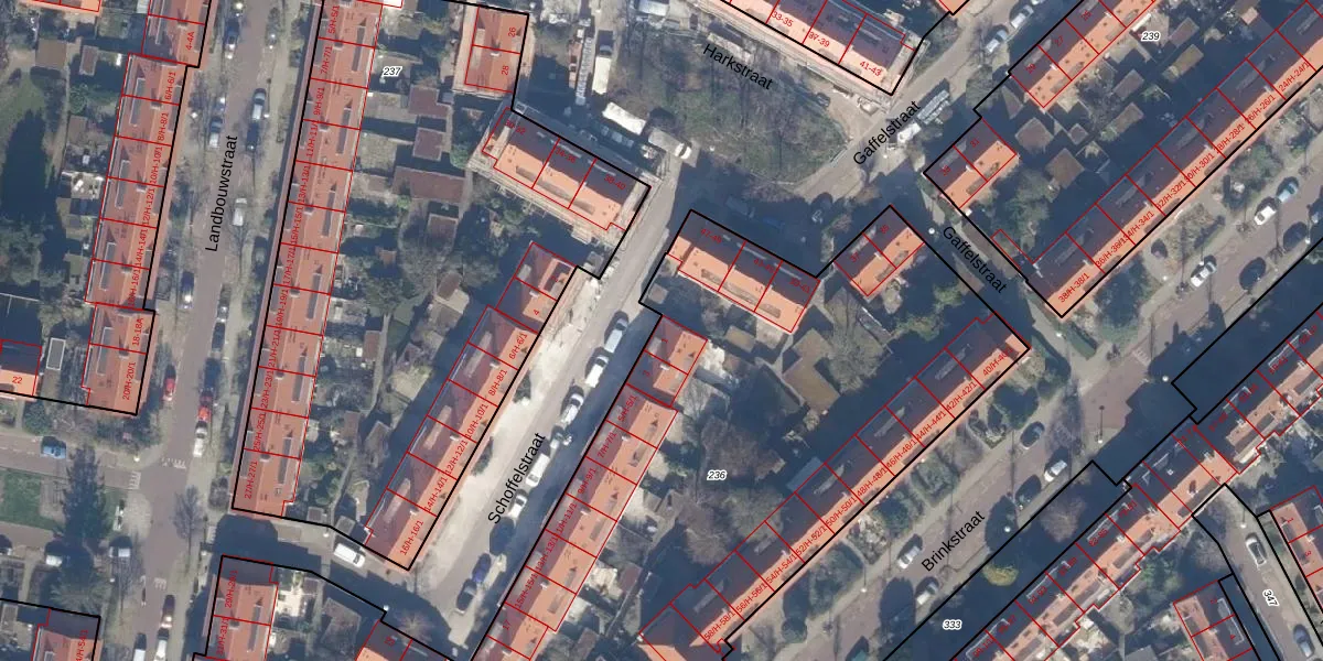 Schoffelstraat 1 is gelegen op kadastraal perceel WTG02C236. Deze kadastrale aanduiding is uniek en wordt gebruikt door het Kadaster om eigendomsrechten en andere zakelijke rechten vast te leggen. Het perceel maakt onderdeel uit van de kadastrale gemeente Watergraafsmeer.