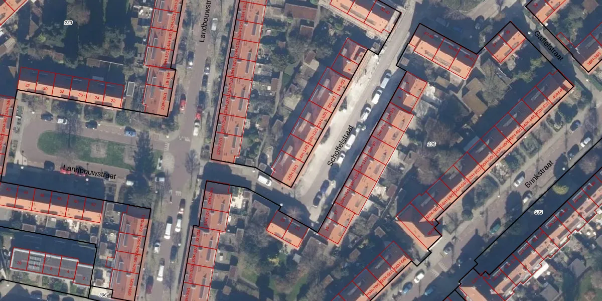 Het perceel waarop Schoffelstraat 14-H staat heeft een oppervlakte van 5775 m². Dit is een zeer groot perceel. De perceeloppervlakte wordt geregistreerd door het Kadaster. Gedetailleerde informatie over de maten van dit perceel kunt u vinden in het rapport Kadastrale kaart met maatvoering van Schoffelstraat 14-H.