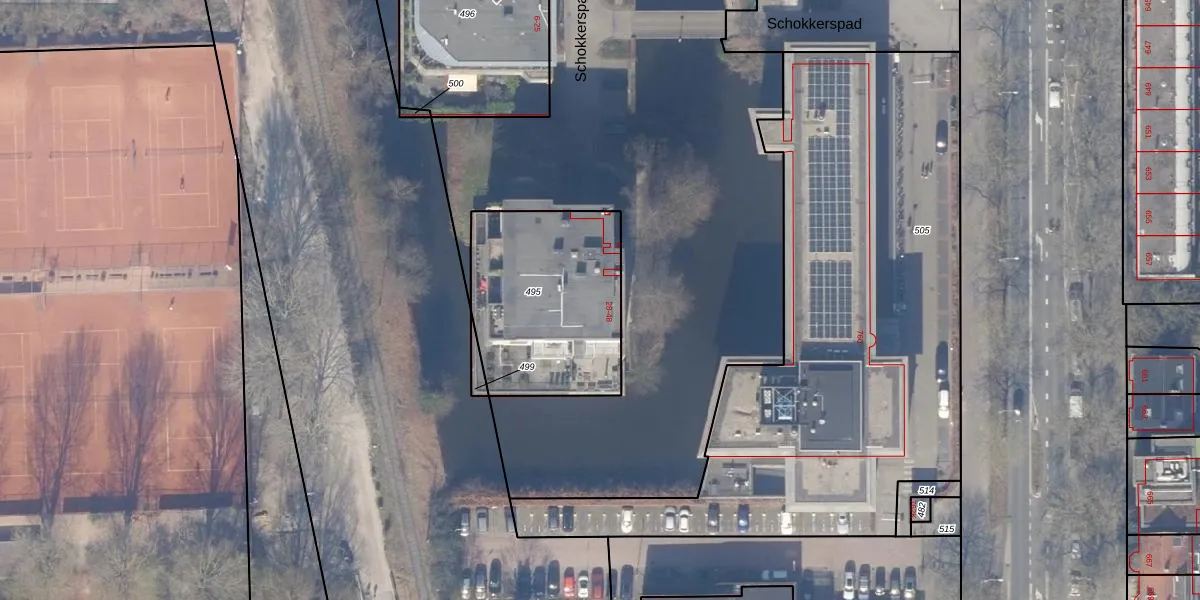 Het perceel waarop Schokkerspad 48 staat heeft een oppervlakte van 749 m². Dit is een groot perceel. De perceeloppervlakte wordt geregistreerd door het Kadaster. Gedetailleerde informatie over de maten van dit perceel kunt u vinden in het rapport Kadastrale kaart met maatvoering van Schokkerspad 48.