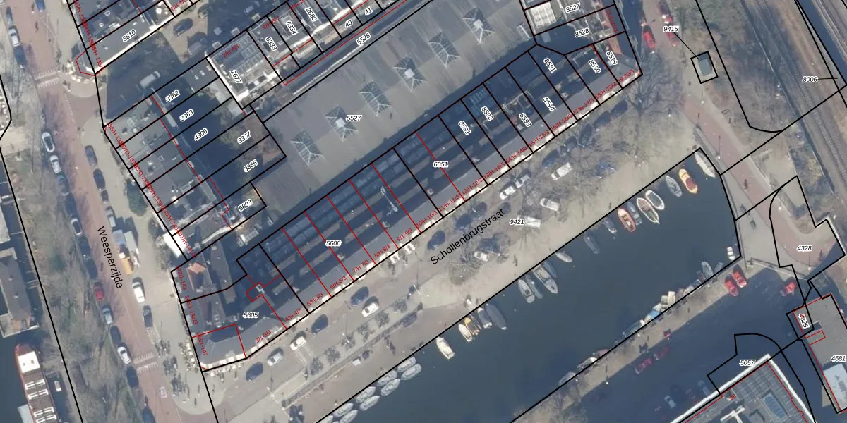 Het adres is gelegen op perceel 5606 in de sectie W en de kadastrale gemeente Amsterdam. De kadastrale aanduiding is aldus ASD19-W-5606. Het perceel is 782 m² groot. Dat is kleiner dan de gemiddelde perceeloppervlakte in Amsterdam, dat op 1563,05 m² ligt. Het kleinste perceel in de kadastrale gemeente is 0 m² groot. De grootste perceeloppervlakte is 17,9 ha. Er zijn 25 adressen aanwezig op het perceel. De huidige grenzen van het perceel zijn digitaal in de Basisregistratie Kadaster (BRK) geregistreerd op 14-11-2006.