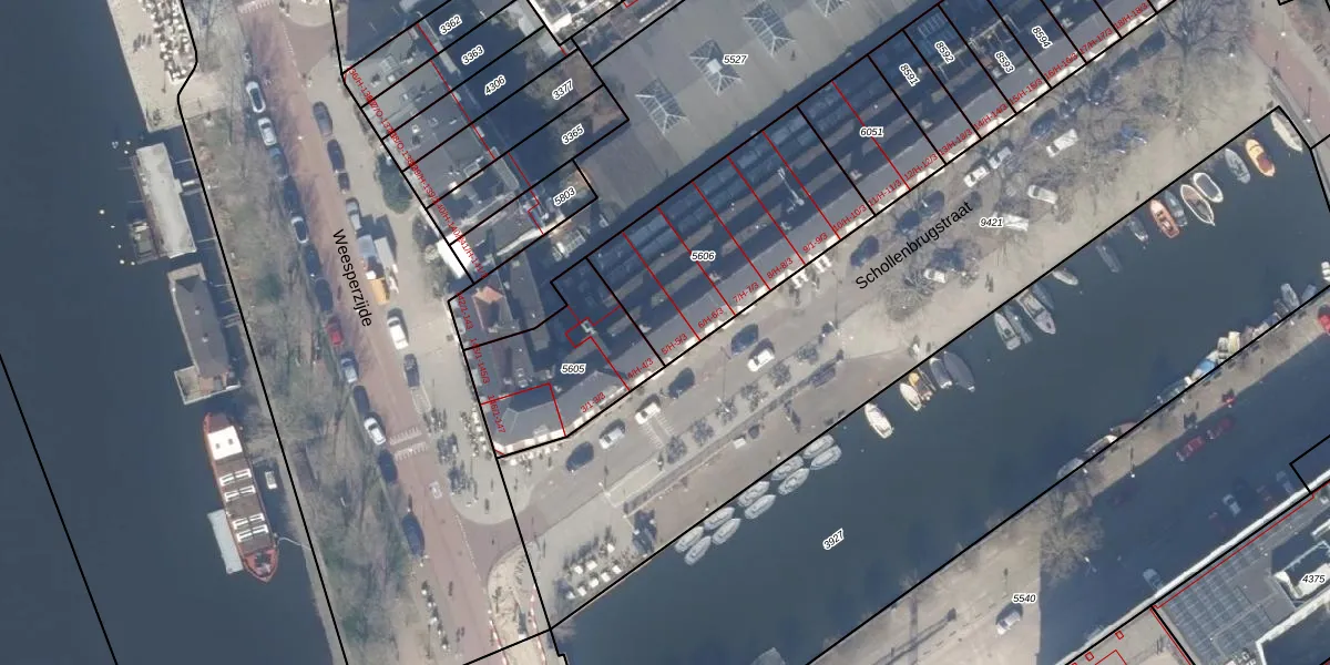 Schollenbrugstraat 5-3 is gelegen op kadastraal perceel ASD19W5606. Deze kadastrale aanduiding is uniek en wordt gebruikt door het Kadaster om eigendomsrechten en andere zakelijke rechten vast te leggen. Het perceel maakt onderdeel uit van de kadastrale gemeente Amsterdam.