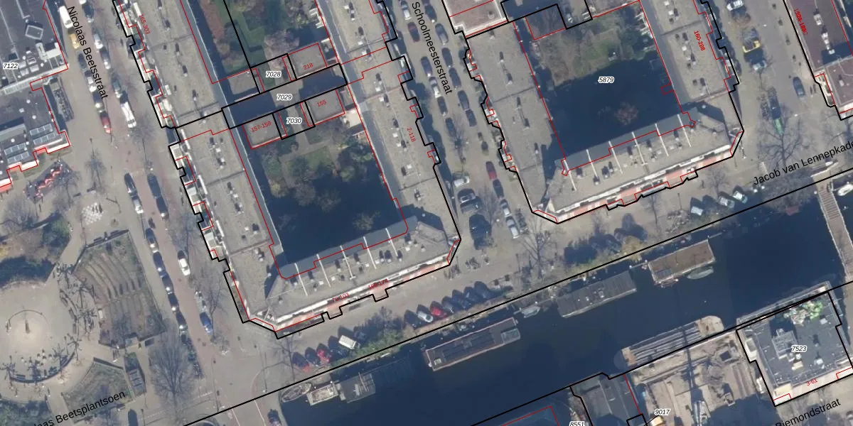 Het adres ligt op het perceel ASD16-T-5872, dat zich in de kadastrale gemeente Amsterdam bevindt. De oppervlakte van het perceel is 3839 m². Dat is groter dan gemiddeld in Amsterdam, waar de gemiddelde perceeloppervlakte op 245,33 m² ligt. Het kleinste perceel in de kadastrale gemeente is 0 m² groot. De grootste perceeloppervlakte is 3,3 ha. Er zijn 107 adressen aanwezig op het perceel. In de Basisregistratie Kadaster (BRK) werden de grenzen van het perceel geregistreerd op 02-07-2013.