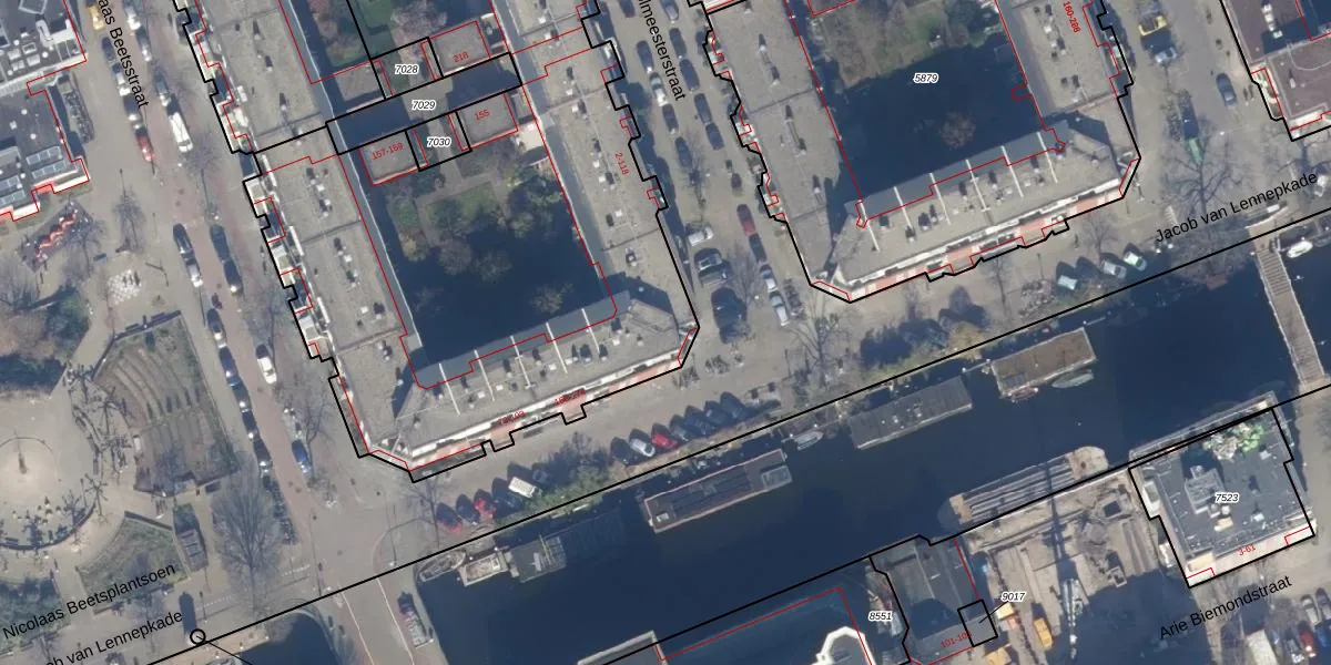 Het adres ligt op het perceel ASD16-T-5872, dat zich in de kadastrale gemeente Amsterdam bevindt. De oppervlakte van het perceel is 3839 m². Dat is groter dan gemiddeld in Amsterdam, waar de gemiddelde perceeloppervlakte op 245,33 m² ligt. Het kleinste perceel in de kadastrale gemeente is 0 m² groot. De grootste perceeloppervlakte is 3,3 ha. Op het perceel zijn 107 adressen aanwezig. De huidige grenzen van het perceel zijn digitaal in de Basisregistratie Kadaster (BRK) geregistreerd op 02-07-2013.