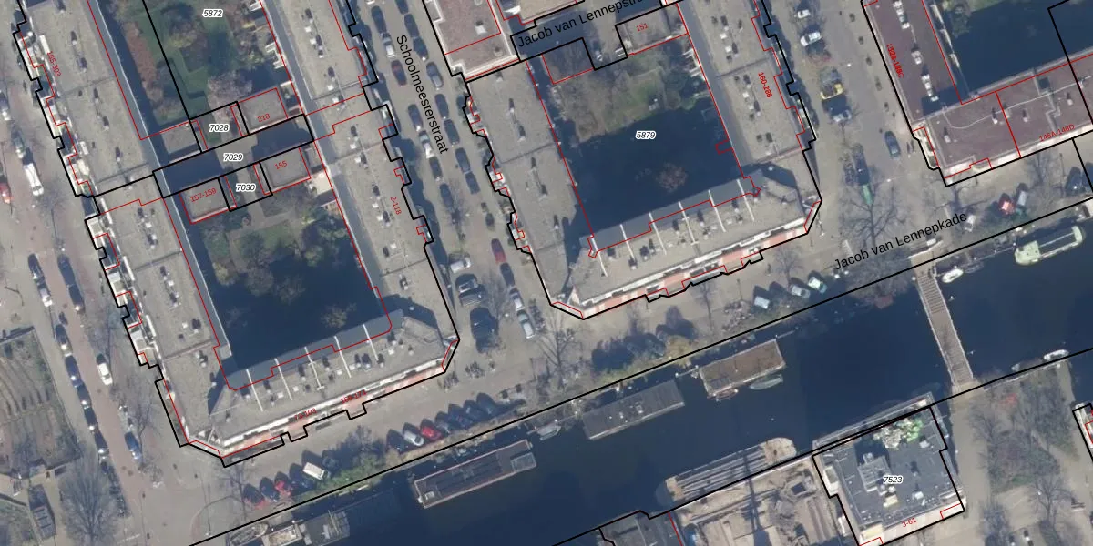 Het adres ligt op het perceel ASD16-T-5879, dat zich in de kadastrale gemeente Amsterdam bevindt. De oppervlakte van het perceel is 2683 m². Dat is groter dan gemiddeld in Amsterdam, waar de gemiddelde perceeloppervlakte op 245,33 m² ligt. Het kleinste perceel in de kadastrale gemeente is 0 m² groot. De grootste perceeloppervlakte is 3,3 ha. Op het perceel zijn 69 adressen aanwezig. De laatste wijziging in het de Basisregistratie Kadaster (BRK) was op 15-08-2008.