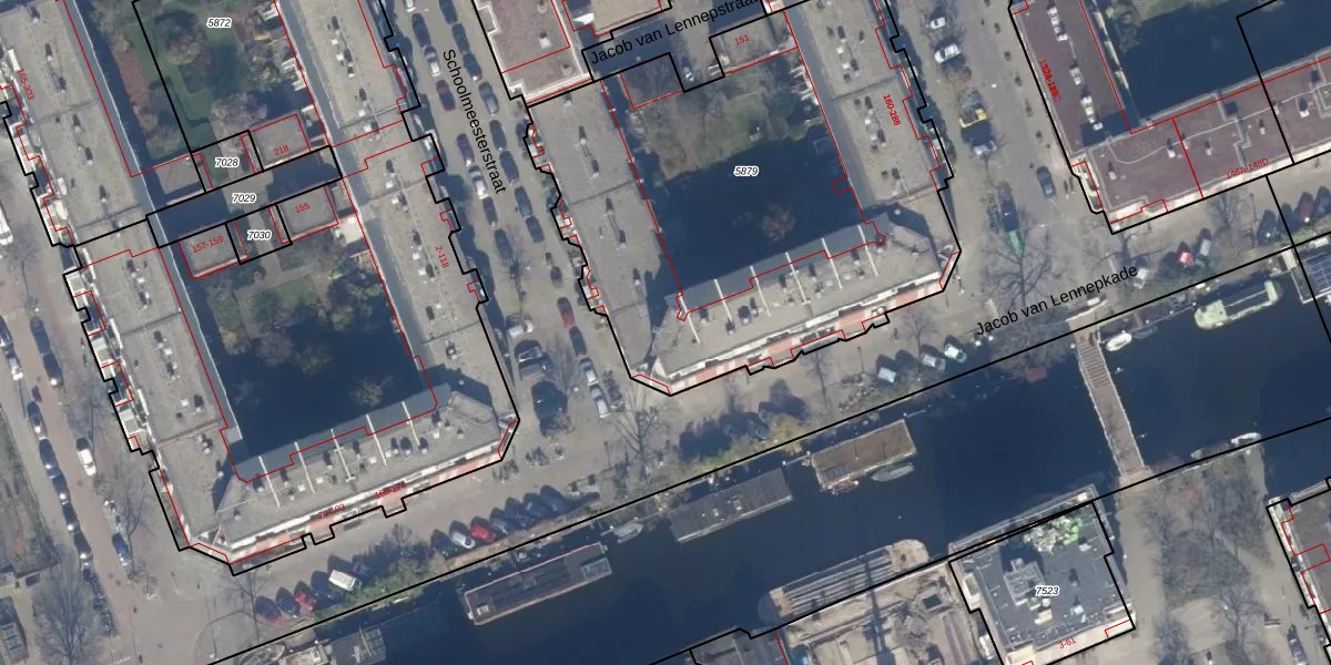 Het adres ligt op het perceel ASD16-T-5879, dat zich in de kadastrale gemeente Amsterdam bevindt. De oppervlakte van het perceel is 2683 m². Dat is groter dan gemiddeld in Amsterdam, waar de gemiddelde perceeloppervlakte op 245,33 m² ligt. Het kleinste perceel in de kadastrale gemeente is 0 m² groot. De grootste perceeloppervlakte is 3,3 ha. Op het perceel liggen in totaal 69 adressen. De huidige grenzen van het perceel zijn digitaal in de Basisregistratie Kadaster (BRK) geregistreerd op 15-08-2008.