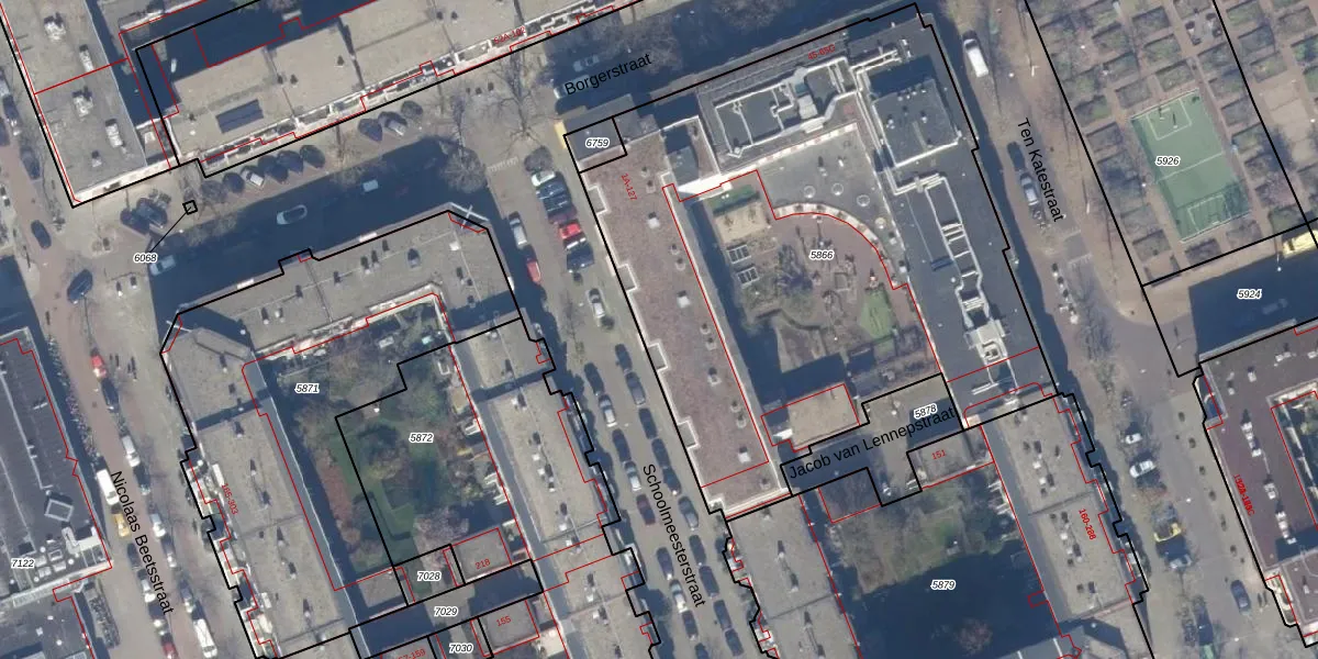 Het adres ligt op het perceel ASD16-T-5866, dat zich in de kadastrale gemeente Amsterdam bevindt. De oppervlakte van het perceel is 3358 m². Dat is groter dan gemiddeld in Amsterdam, waar de gemiddelde perceeloppervlakte op 245,33 m² ligt. Het grootste perceel in de kadastrale gemeente is 3,3 ha. Het kleinste perceel heeft een oppervlakte van 0 m². Op het perceel liggen in totaal 104 adressen. In de Basisregistratie Kadaster (BRK) werden de grenzen van het perceel geregistreerd op 15-08-2008.