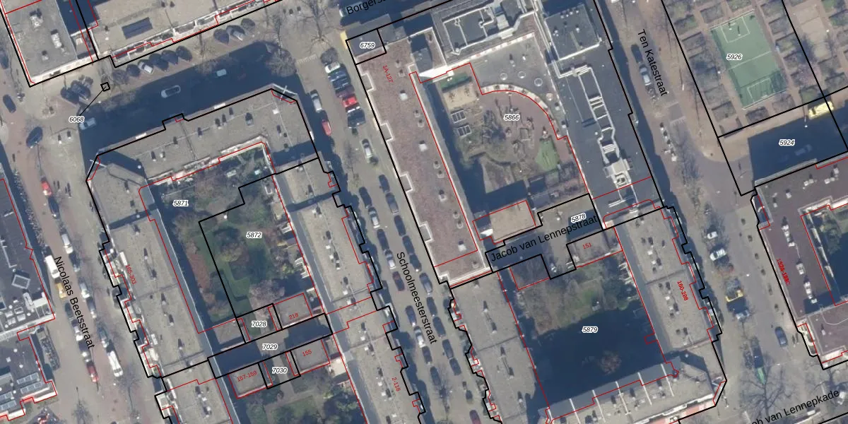 Het adres ligt op het perceel ASD16-T-5866, dat zich in de kadastrale gemeente Amsterdam bevindt. De oppervlakte van het perceel is 3358 m². Dat is groter dan gemiddeld in Amsterdam, waar de gemiddelde perceeloppervlakte op 245,33 m² ligt. Het grootste perceel in de kadastrale gemeente is 3,3 ha. Het kleinste perceel heeft een oppervlakte van 0 m². Op het perceel zijn 104 adressen aanwezig. De huidige grenzen van het perceel zijn digitaal in de Basisregistratie Kadaster (BRK) geregistreerd op 15-08-2008.