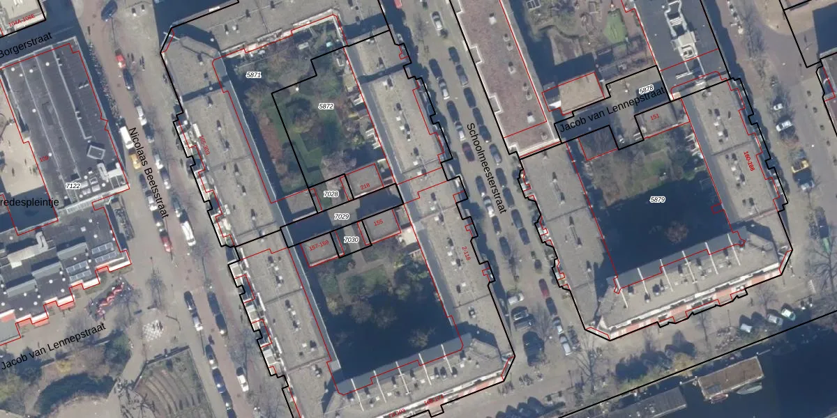 Schoolmeesterstraat 52 is gelegen op kadastraal perceel ASD16T5872. Deze kadastrale aanduiding is uniek en wordt gebruikt door het Kadaster om eigendomsrechten en andere zakelijke rechten vast te leggen. Het perceel maakt onderdeel uit van de kadastrale gemeente Amsterdam.