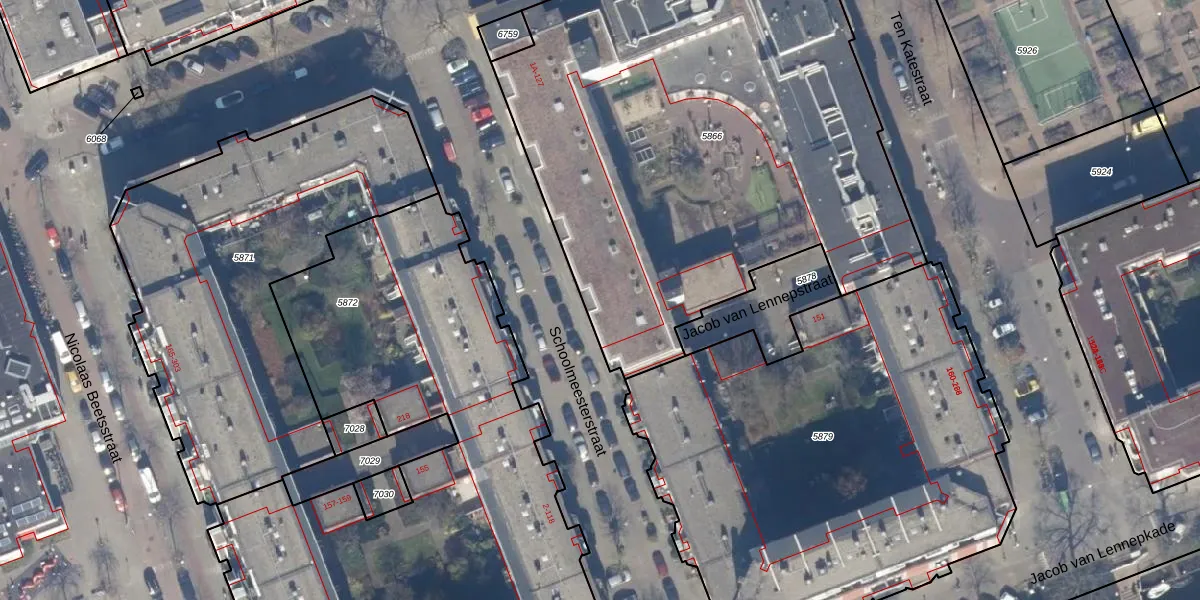 Het adres ligt op het perceel ASD16-T-5866, dat zich in de kadastrale gemeente Amsterdam bevindt. De oppervlakte van het perceel is 3358 m². Dat is groter dan gemiddeld in Amsterdam, waar de gemiddelde perceeloppervlakte op 245,33 m² ligt. Het grootste perceel in de kadastrale gemeente is 3,3 ha. Het kleinste perceel heeft een oppervlakte van 0 m². Op het perceel liggen in totaal 104 adressen. In de Basisregistratie Kadaster (BRK) werden de grenzen van het perceel geregistreerd op 15-08-2008.