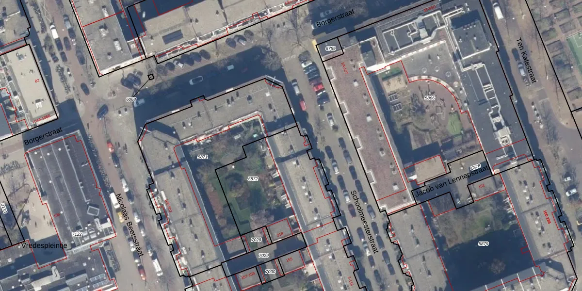 Schoolmeesterstraat 6 is gelegen op kadastraal perceel ASD16T5872. Deze kadastrale aanduiding is uniek en wordt gebruikt door het Kadaster om eigendomsrechten en andere zakelijke rechten vast te leggen. Het perceel maakt onderdeel uit van de kadastrale gemeente Amsterdam.