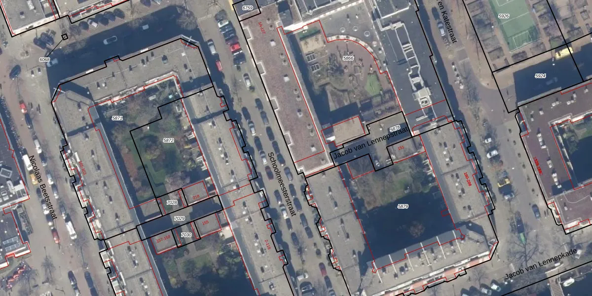 Het adres ligt op het perceel ASD16-T-5866, dat zich in de kadastrale gemeente Amsterdam bevindt. De oppervlakte van het perceel is 3358 m². Dat is groter dan gemiddeld in Amsterdam, waar de gemiddelde perceeloppervlakte op 245,33 m² ligt. Het grootste perceel in de kadastrale gemeente is 3,3 ha. Het kleinste perceel heeft een oppervlakte van 0 m². Op het perceel liggen in totaal 104 adressen. De huidige grenzen van het perceel zijn digitaal in de Basisregistratie Kadaster (BRK) geregistreerd op 15-08-2008.