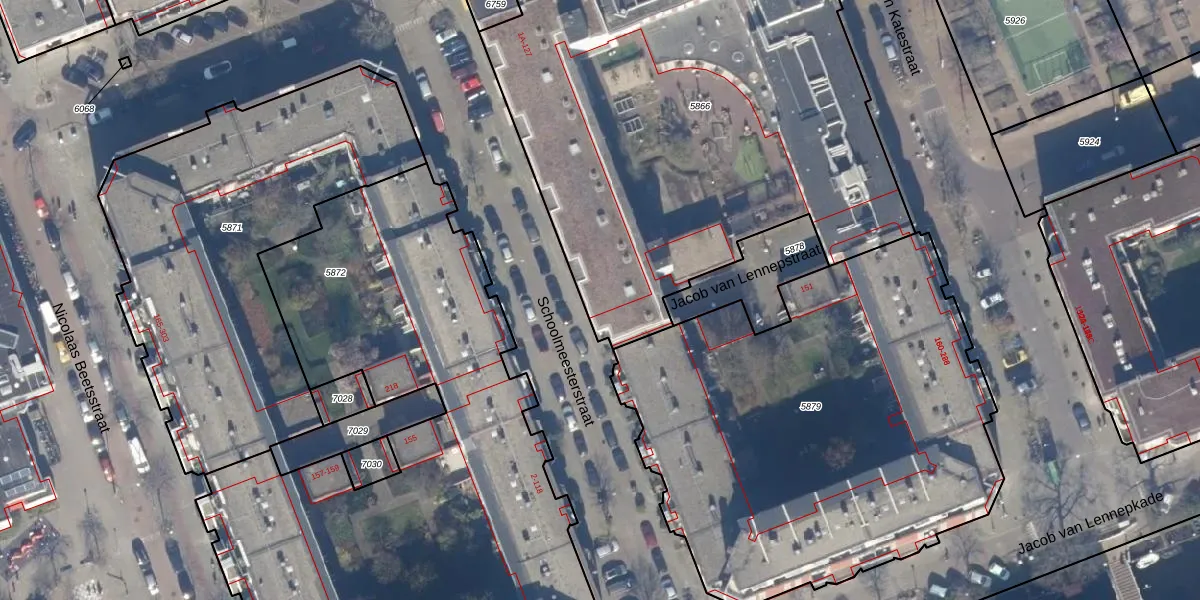 Het adres ligt op het perceel ASD16-T-5866, dat zich in de kadastrale gemeente Amsterdam bevindt. De oppervlakte van het perceel is 3358 m². Dat is groter dan gemiddeld in Amsterdam, waar de gemiddelde perceeloppervlakte op 245,33 m² ligt. Het grootste perceel in de kadastrale gemeente is 3,3 ha. Het kleinste perceel heeft een oppervlakte van 0 m². Op het perceel liggen in totaal 104 adressen. De laatste wijziging in het de Basisregistratie Kadaster (BRK) was op 15-08-2008.