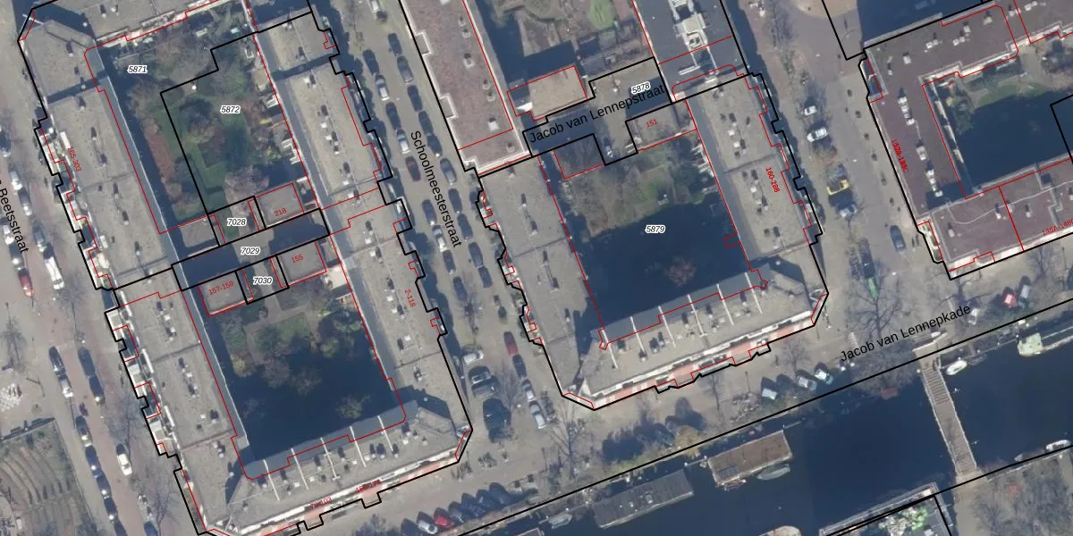 Schoolmeesterstraat 89 is gelegen op kadastraal perceel ASD16T5879. Deze kadastrale aanduiding is uniek en wordt gebruikt door het Kadaster om eigendomsrechten en andere zakelijke rechten vast te leggen. Het perceel maakt onderdeel uit van de kadastrale gemeente Amsterdam.