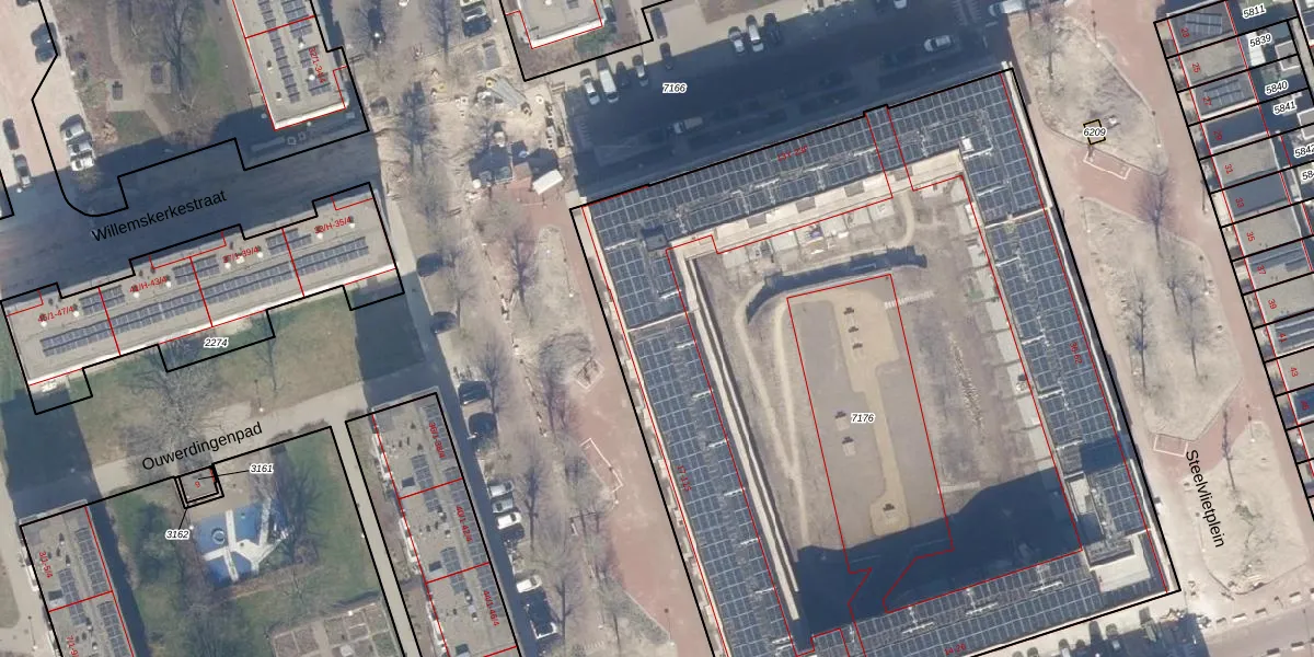 Het adres is gelegen op perceel 7176 in de sectie I en de kadastrale gemeente Sloten Noord-Holland. De kadastrale aanduiding is aldus STN02-I-7176. De gemiddelde perceeloppervlakte in de kadastrale gemeente Sloten Noord-Holland is 2098,64 m². Dit perceel is met zijn 5905 m² dus groter dan gemiddeld. De grootste perceeloppervlakte in de kadastrale gemeente is 1,05 km². De kleinste oppervlakte bedraagt 0 m². Op het perceel liggen in totaal 84 adressen. De huidige grenzen van het perceel zijn digitaal in de Basisregistratie Kadaster (BRK) geregistreerd op 01-04-2025.