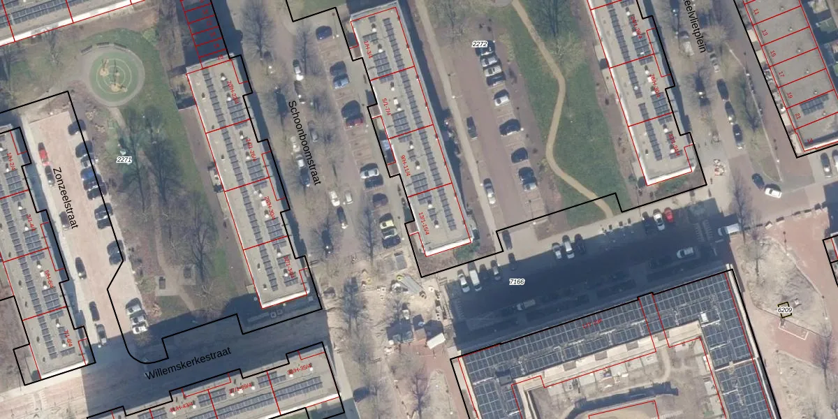 Het perceel waarop Schoonboomstraat 13-4 staat heeft een oppervlakte van 6740 m². Dit is een zeer groot perceel. De perceeloppervlakte wordt geregistreerd door het Kadaster. Gedetailleerde informatie over de maten van dit perceel kunt u vinden in het rapport Kadastrale kaart met maatvoering van Schoonboomstraat 13-4.