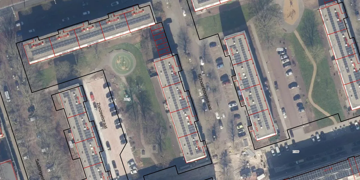 Het perceel waarop Schoonboomstraat 24-4 staat heeft een oppervlakte van 4995 m². Dit is een zeer groot perceel. De perceeloppervlakte wordt geregistreerd door het Kadaster. Gedetailleerde informatie over de maten van dit perceel kunt u vinden in het rapport Kadastrale kaart met maatvoering van Schoonboomstraat 24-4.