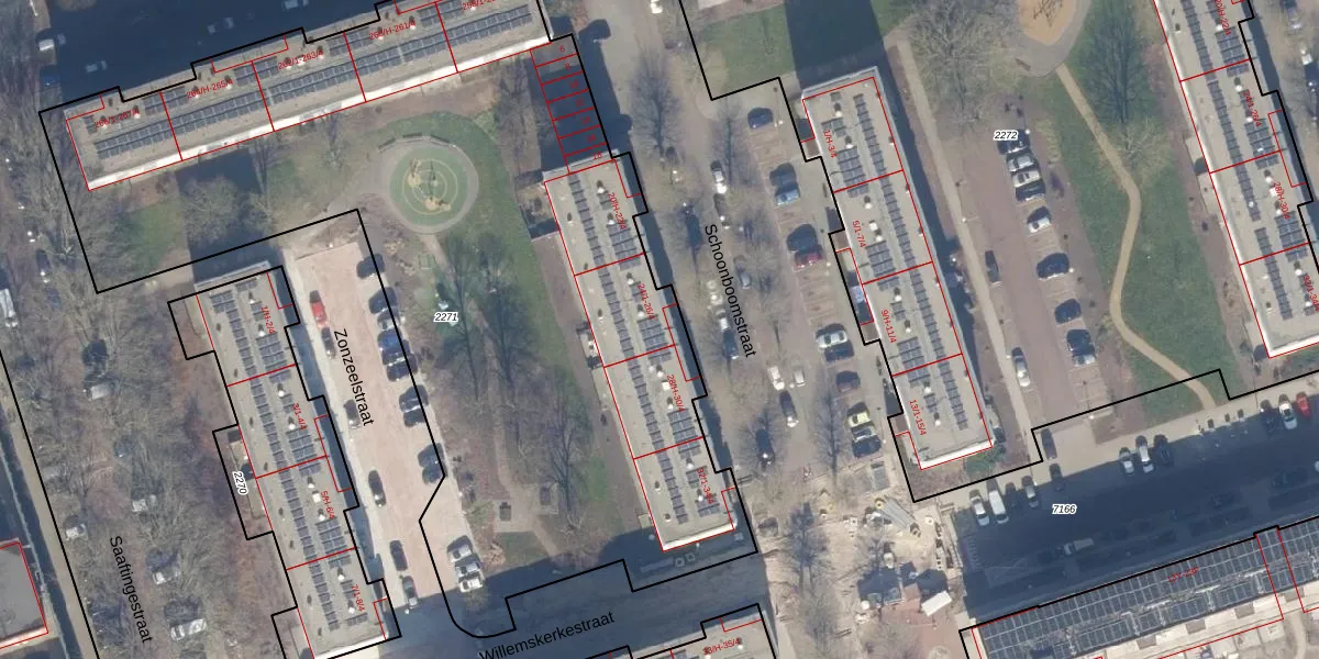 Het perceel waarop Schoonboomstraat 26-2 staat heeft een oppervlakte van 4995 m². Dit is een zeer groot perceel. De perceeloppervlakte wordt geregistreerd door het Kadaster. Gedetailleerde informatie over de maten van dit perceel kunt u vinden in het rapport Kadastrale kaart met maatvoering van Schoonboomstraat 26-2.