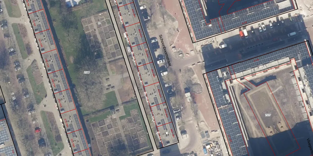 Het perceel waarop Schoonboomstraat 58-H staat heeft een oppervlakte van 1741 m². Dit is een zeer groot perceel. De perceeloppervlakte wordt geregistreerd door het Kadaster. Gedetailleerde informatie over de maten van dit perceel kunt u vinden in het rapport Kadastrale kaart met maatvoering van Schoonboomstraat 58-H.