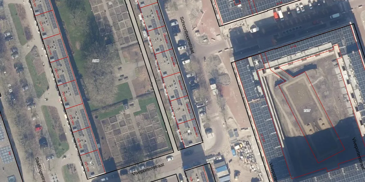 Het perceel waarop Schoonboomstraat 62-3 staat heeft een oppervlakte van 1741 m². Dit is een zeer groot perceel. De perceeloppervlakte wordt geregistreerd door het Kadaster. Gedetailleerde informatie over de maten van dit perceel kunt u vinden in het rapport Kadastrale kaart met maatvoering van Schoonboomstraat 62-3.