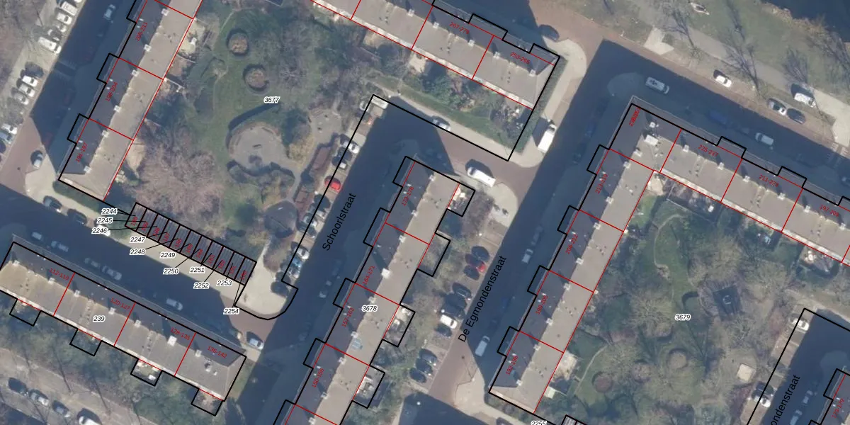 Het perceel waarop Schoorlstraat 174 staat heeft een oppervlakte van 1177 m². Dit is een zeer groot perceel. De perceeloppervlakte wordt geregistreerd door het Kadaster. Gedetailleerde informatie over de maten van dit perceel kunt u vinden in het rapport Kadastrale kaart met maatvoering van Schoorlstraat 174.