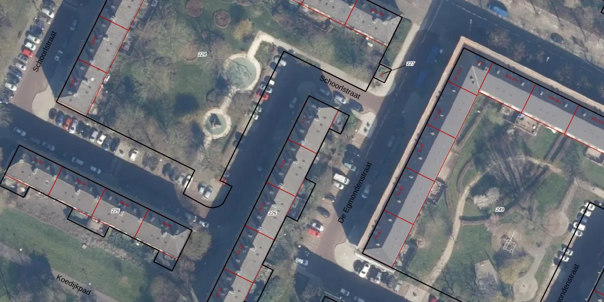 Het perceel waarop Schoorlstraat 8 staat heeft een oppervlakte van 1005 m². Dit is een zeer groot perceel. De perceeloppervlakte wordt geregistreerd door het Kadaster. Gedetailleerde informatie over de maten van dit perceel kunt u vinden in het rapport Kadastrale kaart met maatvoering van Schoorlstraat 8.