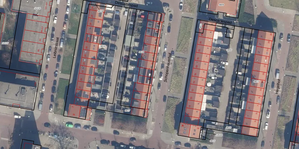 Het perceel waarop Schopenhauerhof 11 staat heeft een oppervlakte van 1102 m². Dit is een zeer groot perceel. De perceeloppervlakte wordt geregistreerd door het Kadaster. Gedetailleerde informatie over de maten van dit perceel kunt u vinden in het rapport Kadastrale kaart met maatvoering van Schopenhauerhof 11.