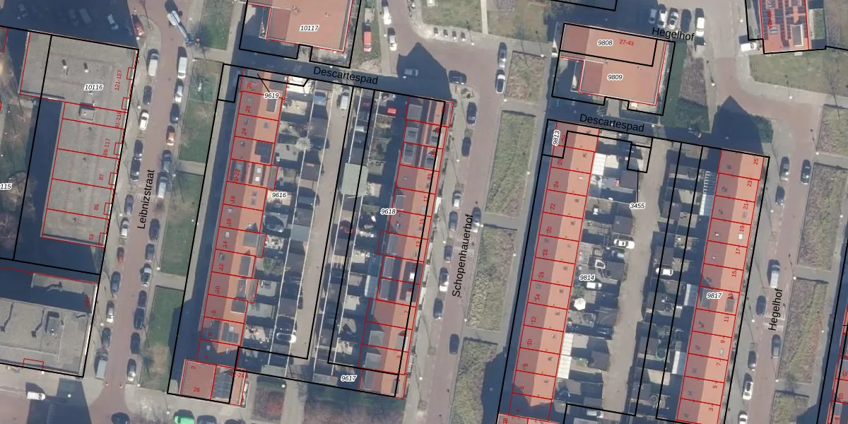 Het perceel waarop Schopenhauerhof 17 staat heeft een oppervlakte van 1102 m². Dit is een zeer groot perceel. De perceeloppervlakte wordt geregistreerd door het Kadaster. Gedetailleerde informatie over de maten van dit perceel kunt u vinden in het rapport Kadastrale kaart met maatvoering van Schopenhauerhof 17.