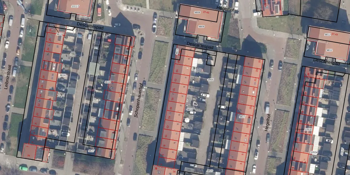 Het perceel waarop Schopenhauerhof 20 staat heeft een oppervlakte van 2190 m². Dit is een zeer groot perceel. De perceeloppervlakte wordt geregistreerd door het Kadaster. Gedetailleerde informatie over de maten van dit perceel kunt u vinden in het rapport Kadastrale kaart met maatvoering van Schopenhauerhof 20.